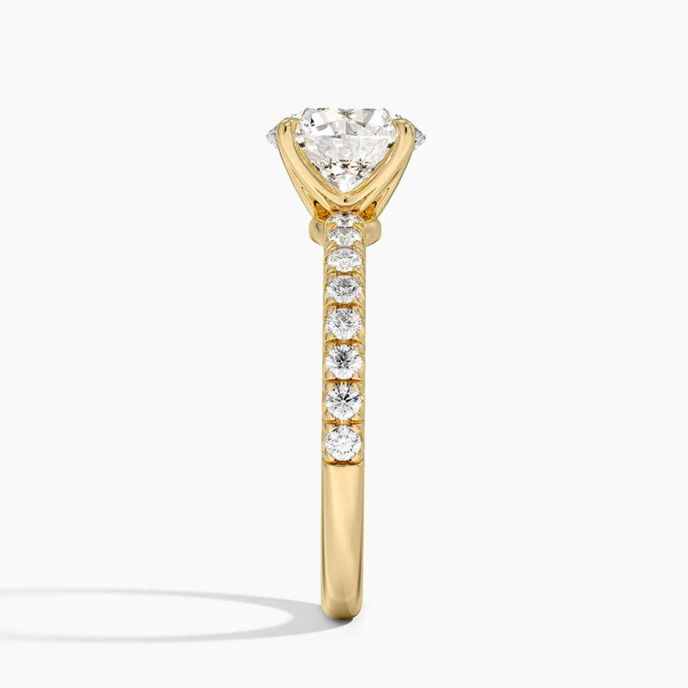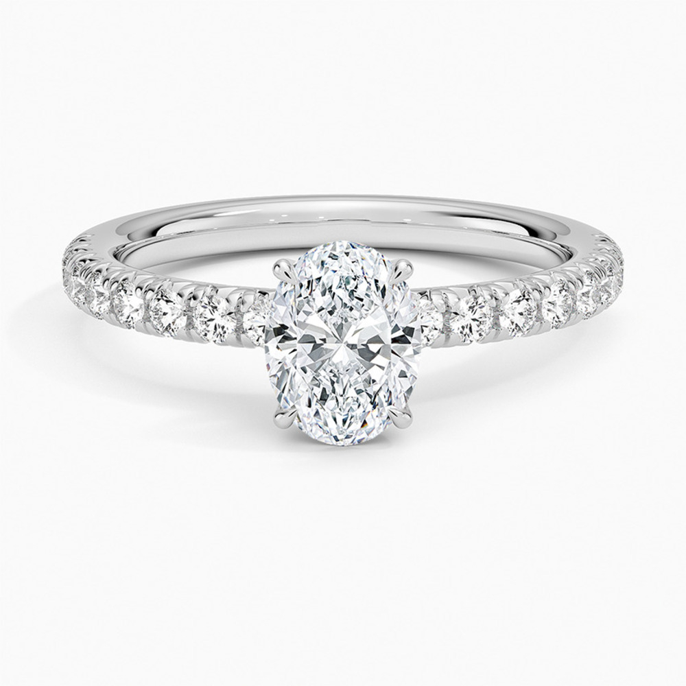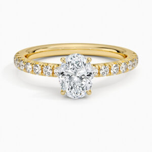 Merhaba! Merkezde 0.61 karat oval kesim pırlanta yer alıyor. Yüzük kolu boyunca yuvarlak minimal pırlantalar (toplam 0.16 karat ) sıralanmış. Bu pavé detay her hareketinizde göz alıcı bir ışıltı yaratıyor.
