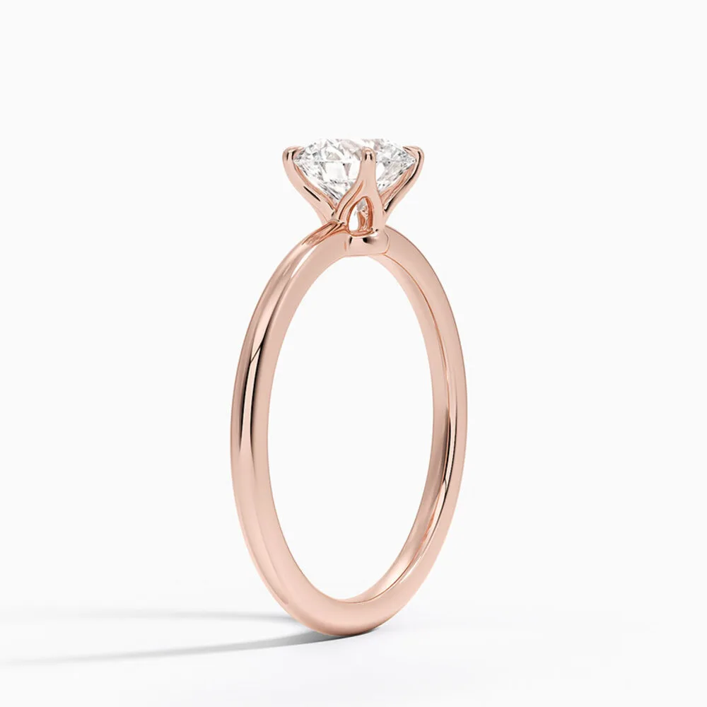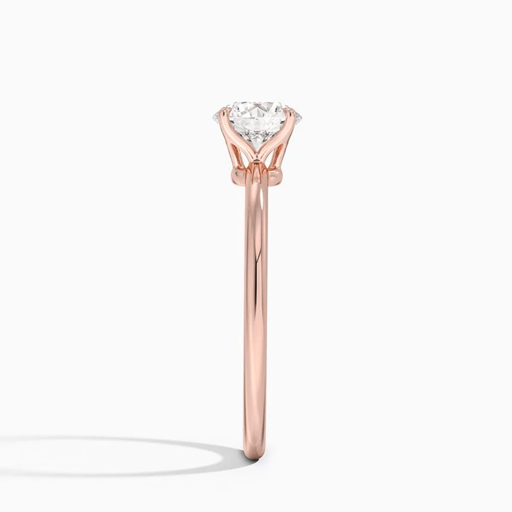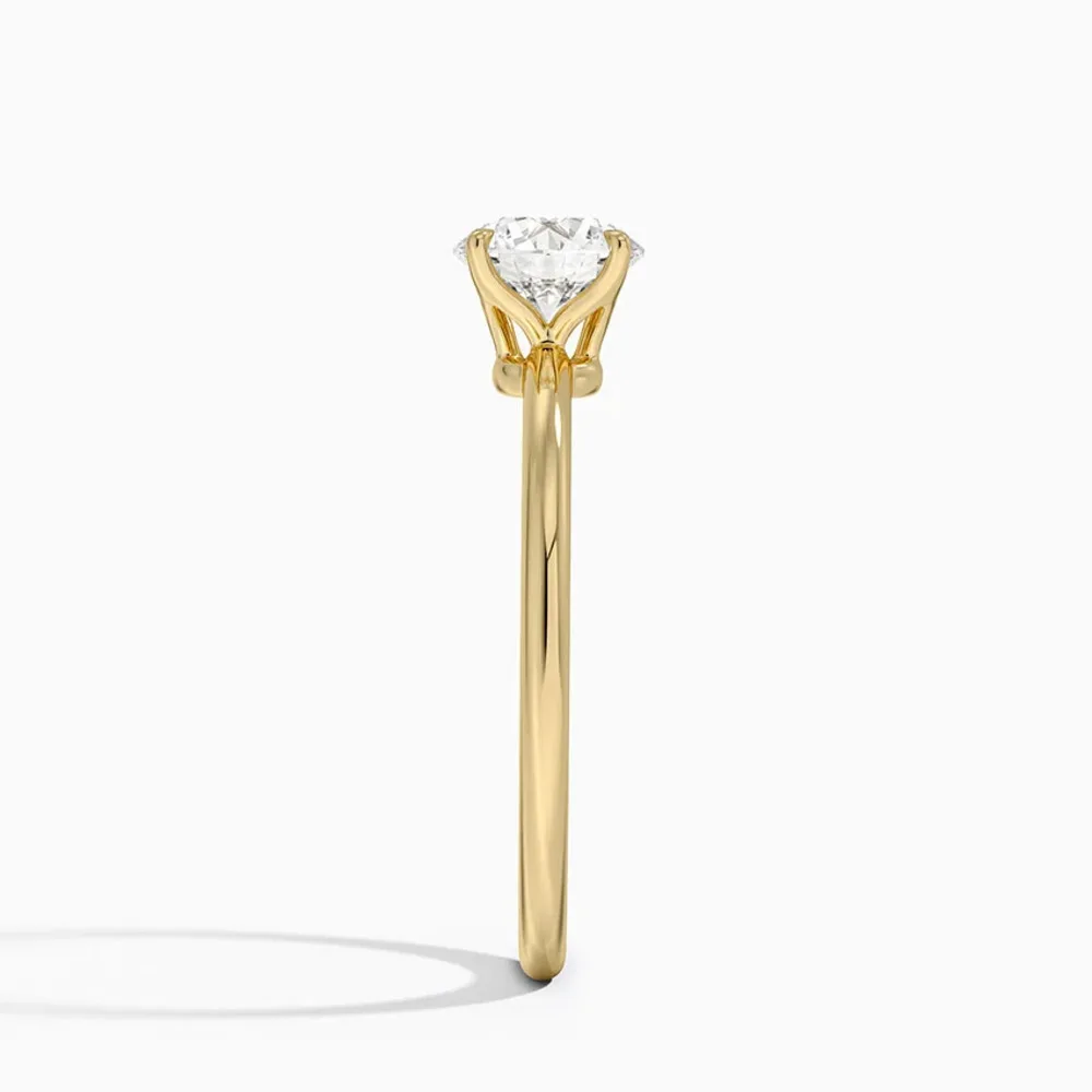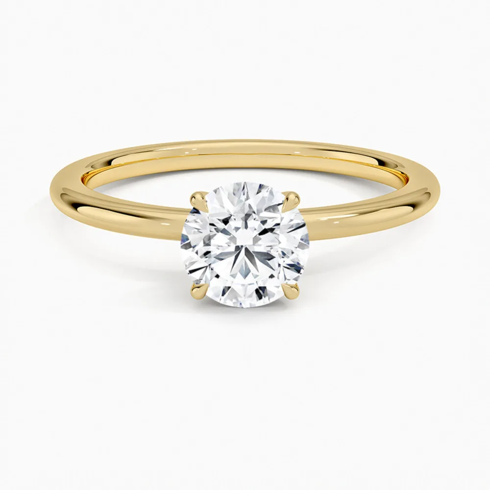 Beyaz, rose veya sarı altın seçenekleriyle geliyor. Her renkte aynı zarafet. Klasik yuvarlak kesim, yıllara meydan okuyan bir seçim.