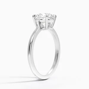 Yüzük kolu ince ve tamamen sade. Ekstra taş yok. Tüm dikkat merkez pırlantanın doğal güzelliğinde.