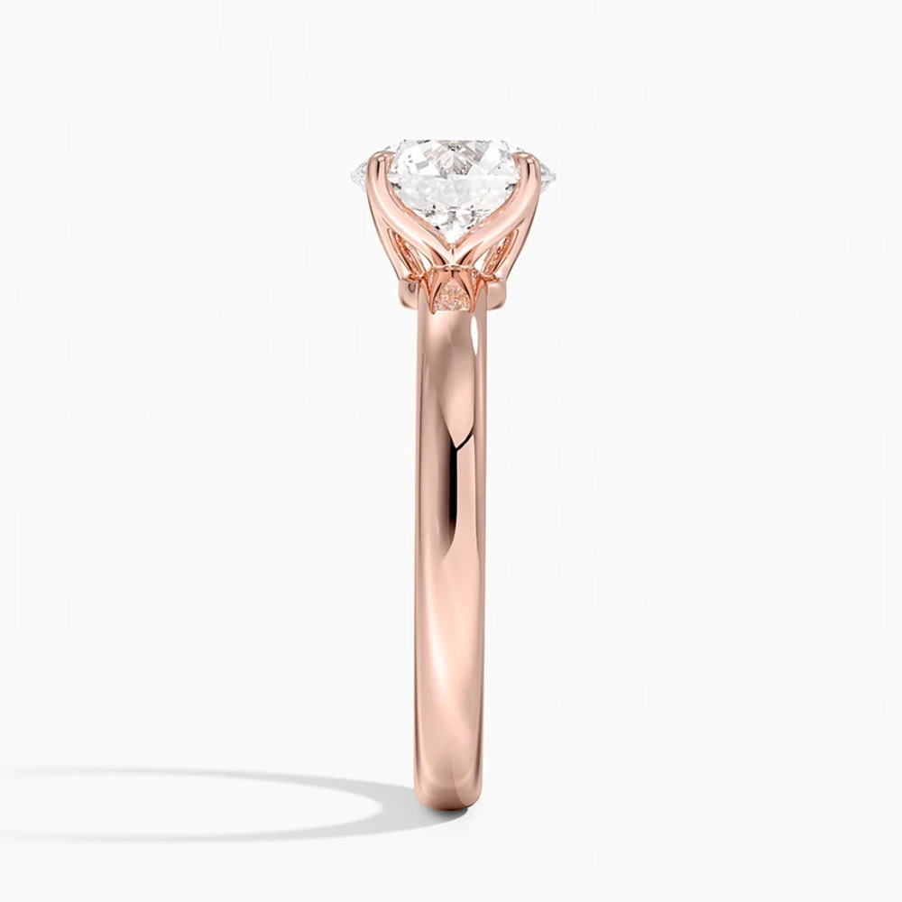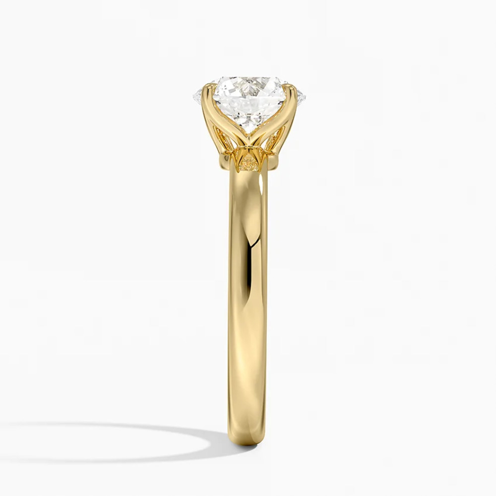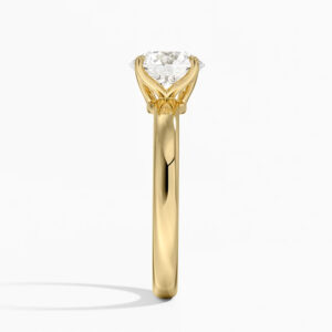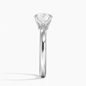 1.59 karat yuvarlak kesim pırlanta F renkte. Özel lale şeklinde tırnaklar taşı tutuyor.