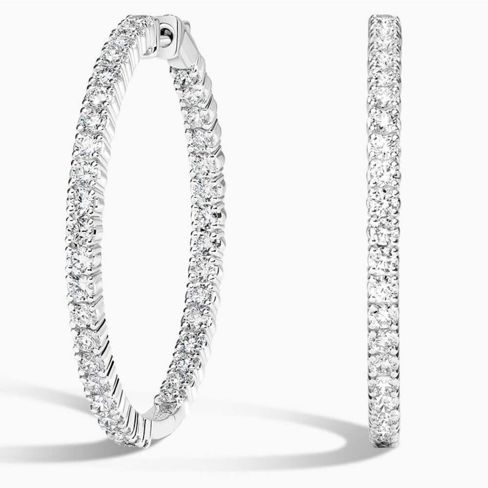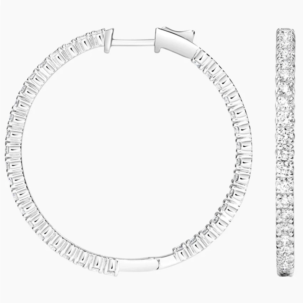 Özgün bir tasarıma sahip bu fantezi model pırlanta halka küpe, güçlü ve dikkat çekici bir görüntüye sahiptir. Toplam 3 karat yuvarlak kesim pırlantalar kullanılmıştır. Taşlar, halka formunun tamamını çevreleyecek şekilde dizilmiştir.