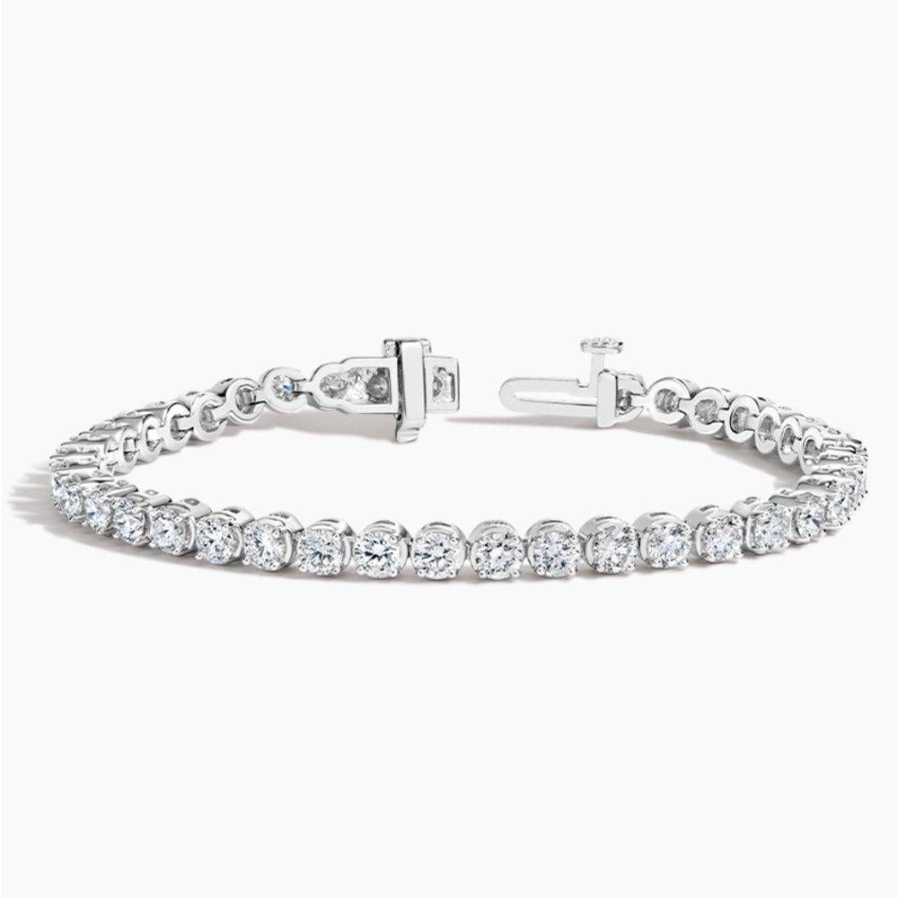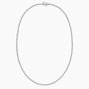 Bu pırlanta bileklik, su yolu tenis tasarımının en göz alıcı hali. Toplam 5 karat yuvarlak brilliant kesim pırlantalar kullanılmış. Taşlar tek sıra halinde dizilmiş. Her taş yuvarlak bezel çerçeve ile sarılmış. Bu çerçeve taşlara yumuşak ve modern bir görünüm kazandırıyor. Kesintisiz bir ışıltı akışı yaratıyor. Bileğe mükemmel uyum sağlayan esnek modeli ile her açıdan büyüleyici parlaklık sunuyor.