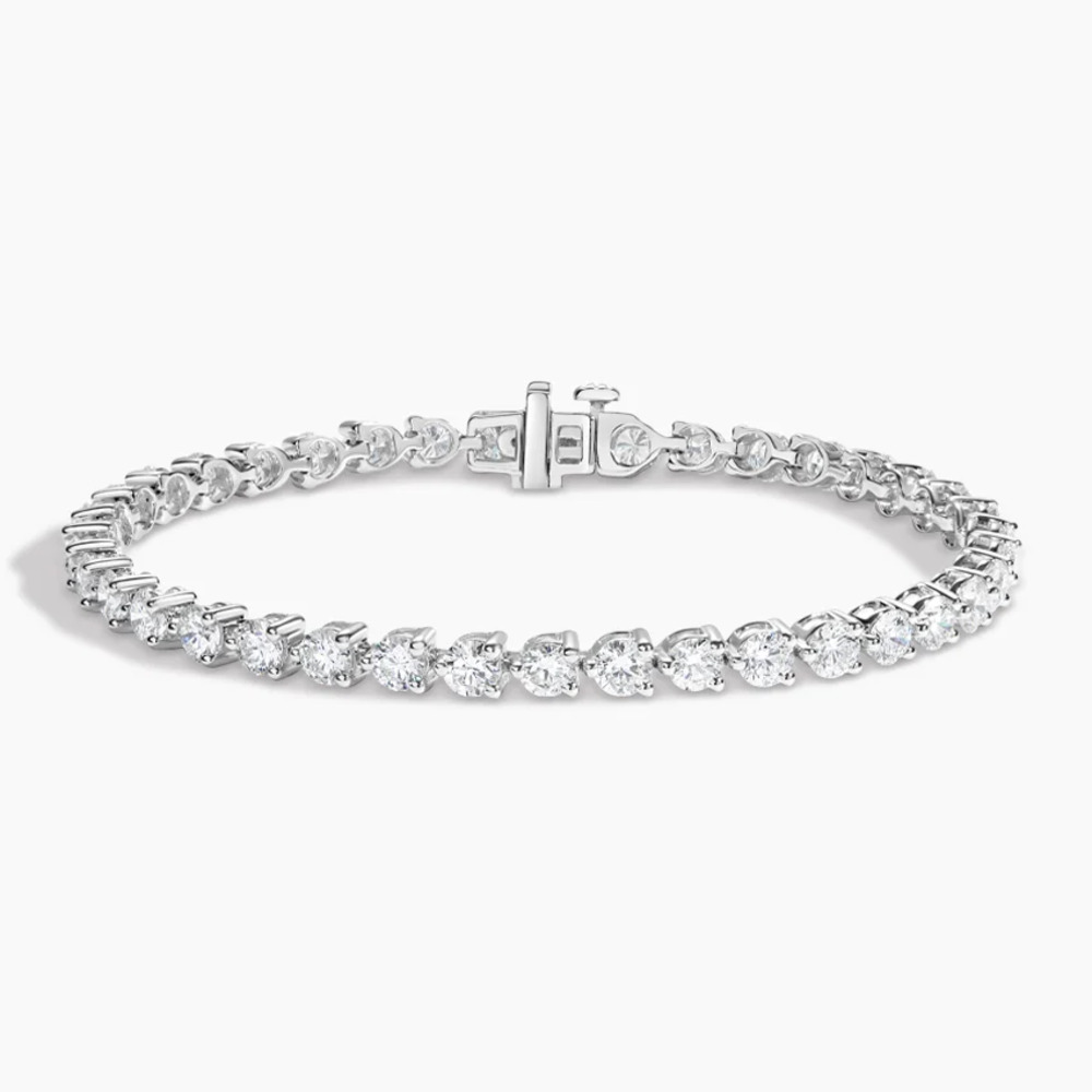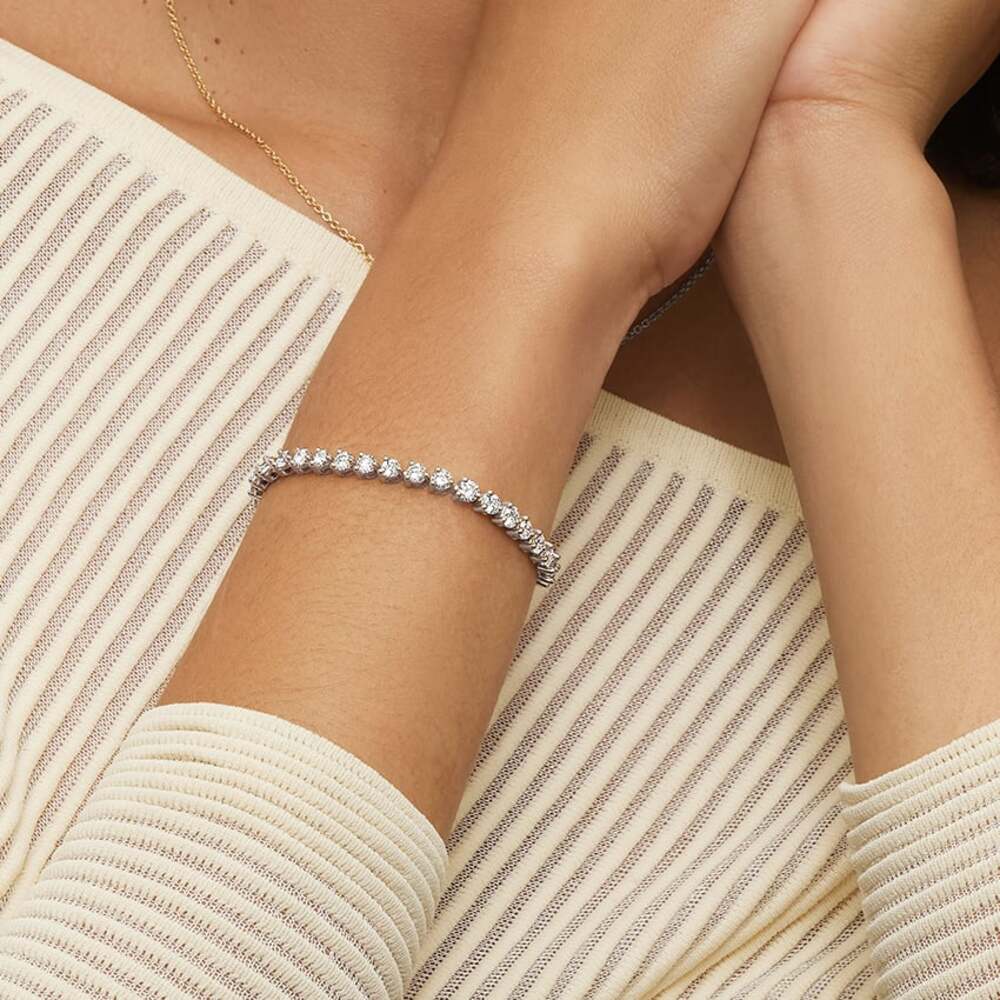 Bu pırlanta bileklik, su yolu tenis tasarımının en etkileyici ve lüks hali. Toplam 7 karat yuvarlak brilliant kesim pırlantalar kullanılmış. Taşlar tek sıra halinde dizilmiş. Her taş yuvarlak bezel çerçeve ile sarılmış. Bu çerçeve taşlara yumuşak, modern ve güvenli bir görünüm kazandırıyor. Kesintisiz bir ışıltı akışı yaratıyor. Bileğe mükemmel uyum sağlayan esnek modeli ile her açıdan büyüleyici parlaklık sunuyor.