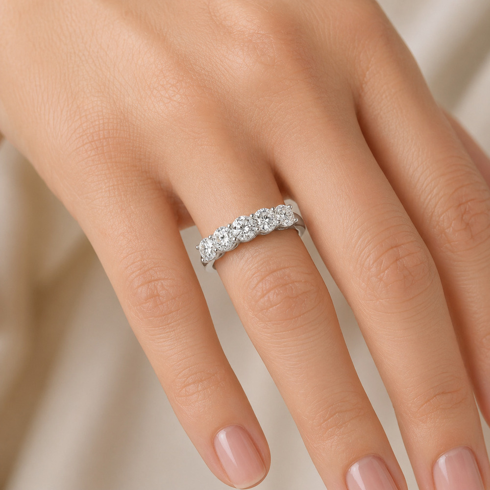 Beştaş pırlanta yüzük, aşkın ve birlikte geçirilen değerli anların en zarif sembollerinden biridir. Bu özel model, dengeli dizilimi ve güçlü ışıltısıyla klasik şıklığı modern bir yorumla sunar.