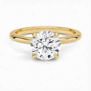 Yüzük kolu tamamen sade ve ince. Hiçbir ek taş veya detay yok – tüm odak merkez pırlantanın doğal güzelliğinde.