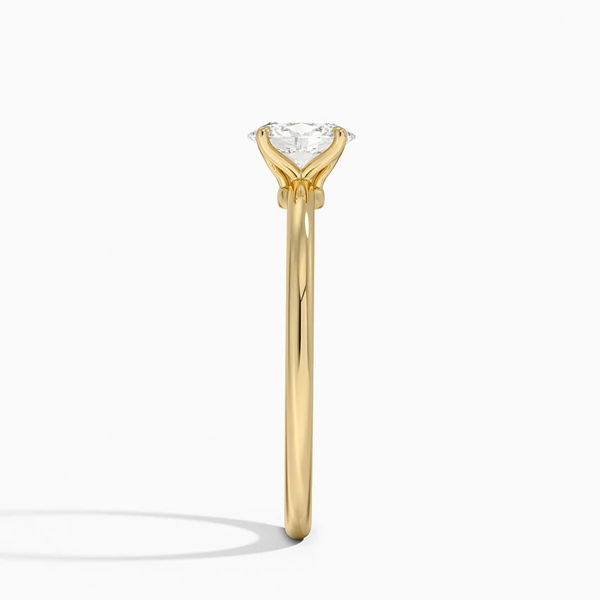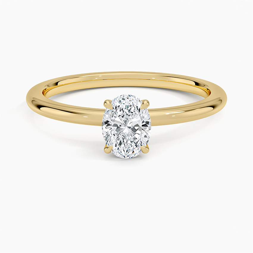 Oval kesim pırlanta tektaş – klasik 4 tırnak ince kol tasarım, beyaz-rose-sarı altın seçenekli, modern zarafetin en ışıltılı hali!