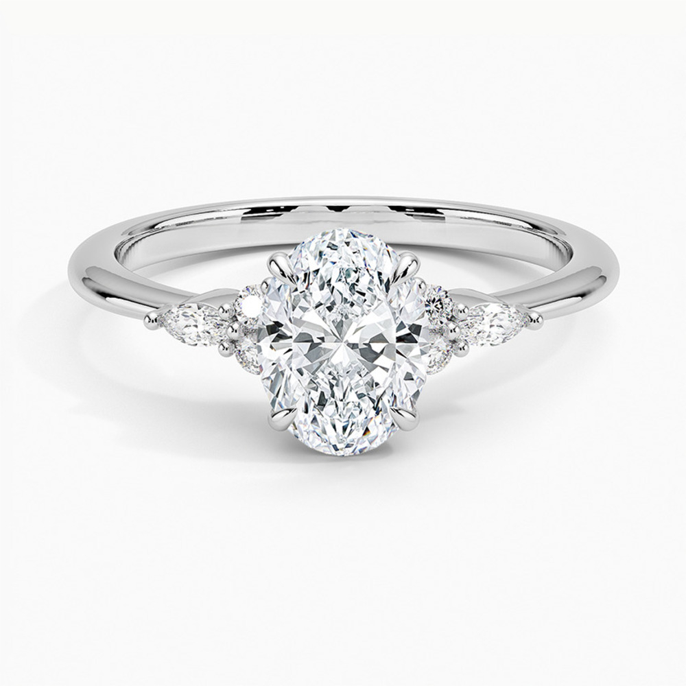 Bu yüzük, oval kesim merkez pırlanta ile markiz ve yuvarlak yan taşların uyumunu bir araya getiren zarif bir tasarımdır. Star Kuyumculuk’un klasik ve modern estetiği buluşturan seçkin koleksiyon anlayışını yansıtır.