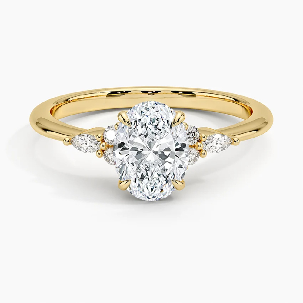 Nadia model oval pırlanta tektaş yüzük, klasik tektaş tasarımını zarif yan taş detaylarıyla zenginleştiren özel bir tasarımdır. Merkezde yer alan oval kesim pırlanta, parmak üzerinde daha büyük ve etkileyici bir görünüm oluştururken ışığı güçlü bir şekilde yansıtarak göz alıcı bir ışıltı sunar.